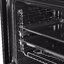 Вместимость камеры — 59 литров, она отлично справится с приготовлением блюд для большой семьи. Черный стеклянный фронт дополнен стильной массивной цельнометаллической ручкой. Фасад духовки совершенно гладкий, без выступающих деталей — это способствует более удобной его очистке. Двухслойное остекление и холодная дверца делают использование духовки совершенно безопасным. Внутреннее стекло дверцы с трамп-линиями позволяет полностью контролировать процесс приготовления пищи. Для приготовления разных блюд есть 5 уровней, на которых можно расположить противни, на 2 уровнях установлены удобные телескопические направляющие. Для защиты детей есть отдельная кнопка на панели для блокировки случайного запуска.