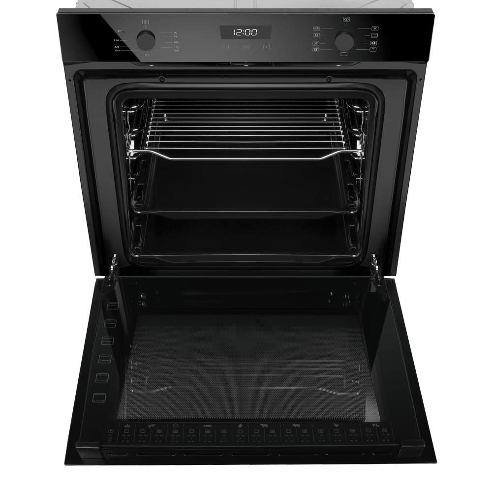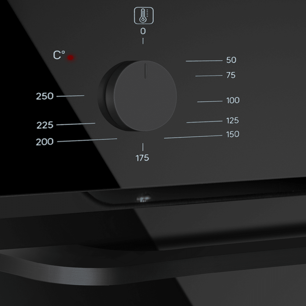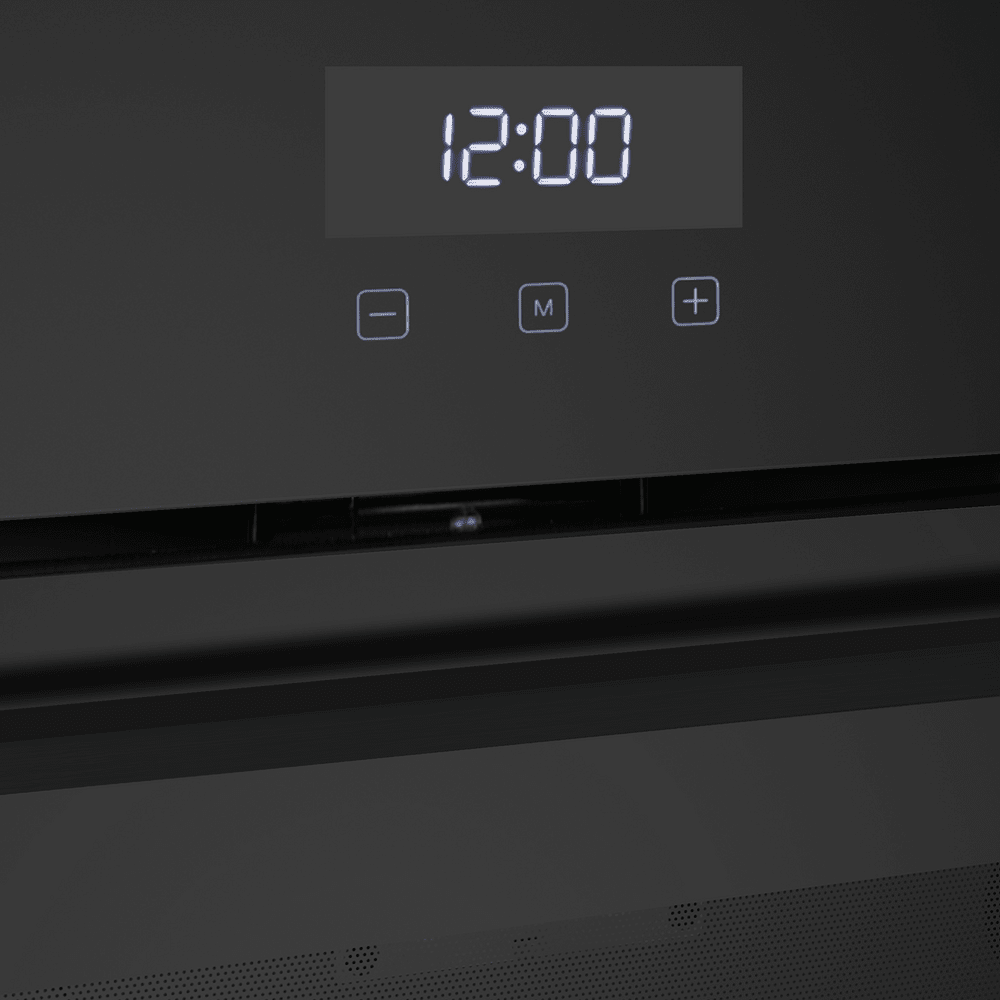 Особенности дизайна и внешней панели управления — также важный пункт при выборе духовки на кухню. В данной модели нужно обратить внимание на цвет — черный, охлаждение двери, чтобы поверхность и мебель вокруг не нагревались.