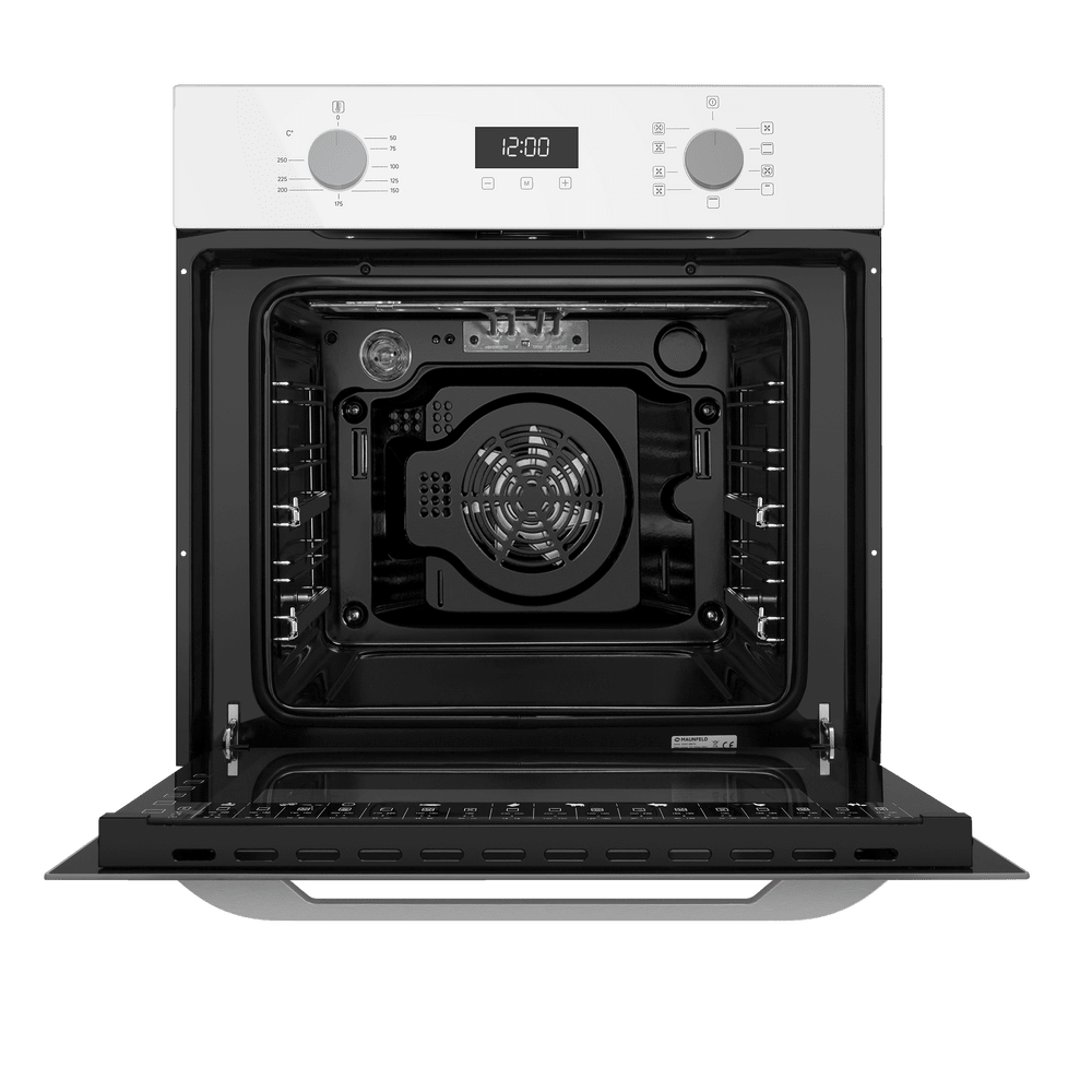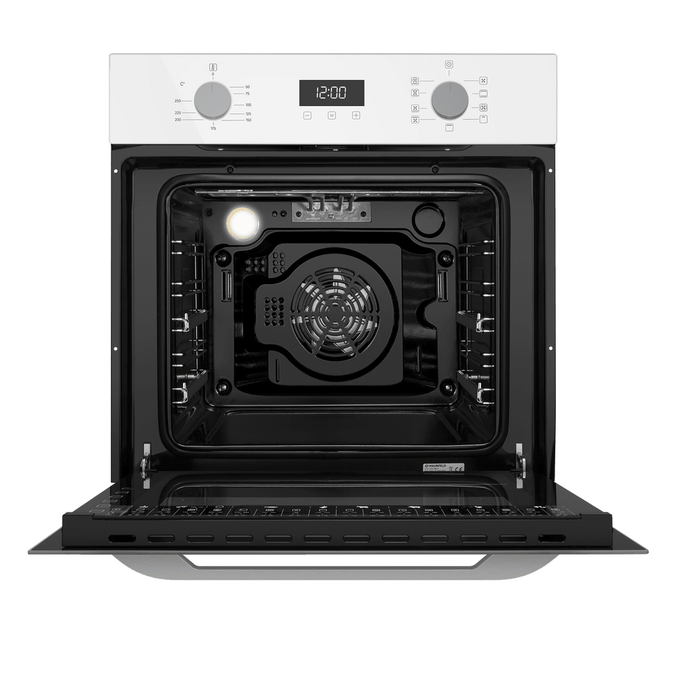 Полноразмерная модель высотой и шириной 59.5 см, глубиной 57.5 см встраивается в нишу под варочной панелью или отдельно. Вместительная камера объёмом 76 л предусматривает пять уровнями приготовления. Максимальная температура нагрева достигает 250 °C. В набор режимов входят традиционный нагрев, отдельная работа верхнего и нижнего ТЭНа, конвекция, режим «пицца», интенсивное жарение, а также гриль и гриль с конвекцией; есть комбинированный режим конвекции с нижним нагревом. Освещение внутренней камеры и эмалевое покрытие с лёгкой очисткой облегчают уход. Для удобства эксплуатации предусмотрены часы, таймер и автоматическое отключение по окончании приготовления.