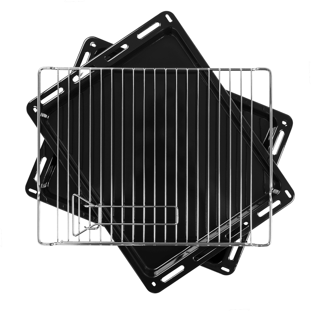 В стандартную комплектацию любого духового шкафа входят один или два противня — эмалированных или с антипригарным покрытием — и решетка. Единственный противень, как правило, имеет низкие бортики и предназначается для приготовления выпечки. Если духовка комплектуется двумя противнями, то второй отличается более высокими бортиками — его можно использовать для запекания мяса, птицы, овощных блюд. На решетке в духовке, не оснащенной грилем, обычно устанавливаются формы для запекания — стальные, керамические или стеклянные. В духовках премиум-класса количество противней может быть увеличено: к стандартному комплекту добавляются противни с перфорацией для мяса, специальные поддоны для сбора выделившегося сока.