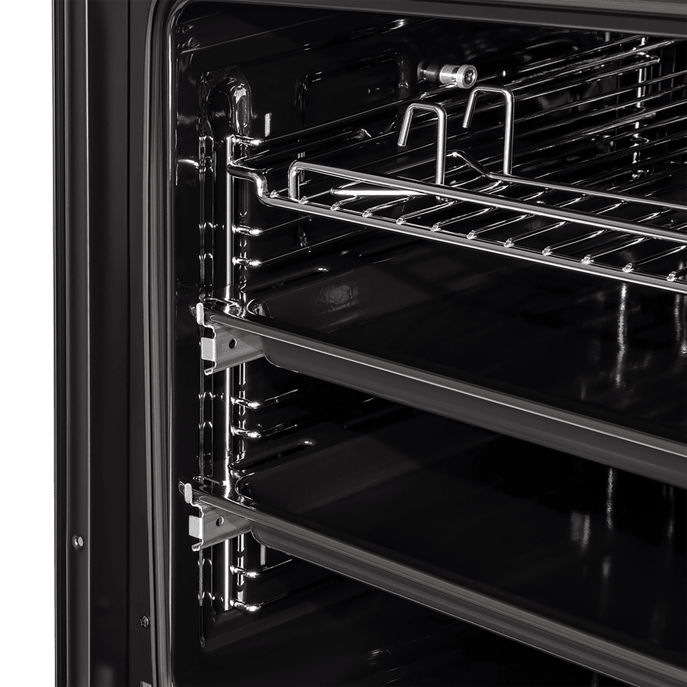 Уровни приготовления — это держатели для противней и решеток, расположенные по бокам камеры. В стандартном шкафу их обычно 4-5, в некоторых моделях доходит до 7 и больше. Для многих блюд имеет значение, на каком уровне их готовить, так как распределение жара происходит по-разному сверху, снизу или посередине. Для выдвижения и переставления противней на этих уровнях есть разного вида направляющие.