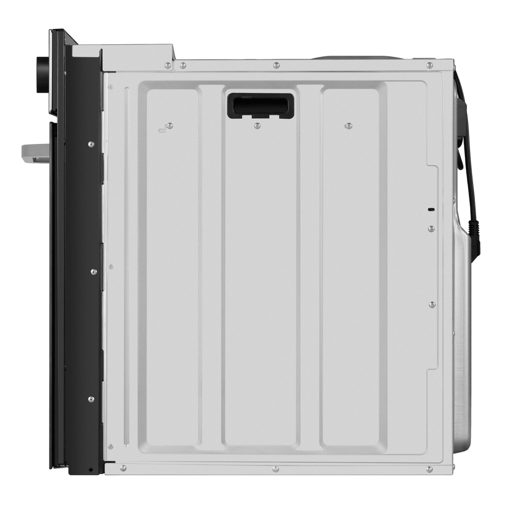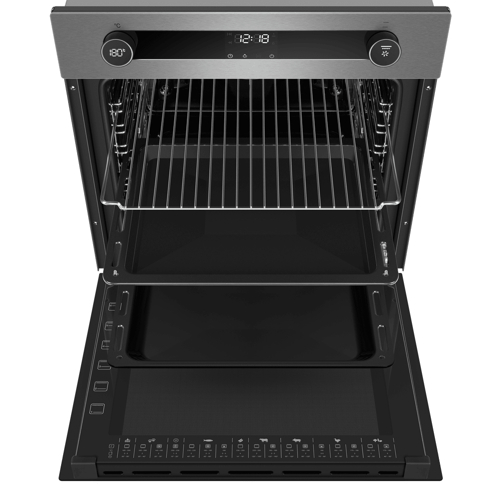 Независимая электрическая духовка в корпусе из нержавеющей стали сочетает стильный внешний вид и продуманную эргономику. Передняя панель выполнена в металлическом оттенке с комбинированной фурнитурой из нержавеющей стали, трёхслойной стеклянной дверцей. На верхней панели управления находятся два поворотных регулятора с оригинальной подсветкой для выбора режима работы и температуры, а между ними дисплей с часами и таймером в сочетании с сенсорными кнопками TouchControl. Внутренняя камера объёмом 76 л предоставляет простор для больших противней и размещения нескольких блюд одновременно, а освещение упрощает визуальный контроль без открытия дверцы.