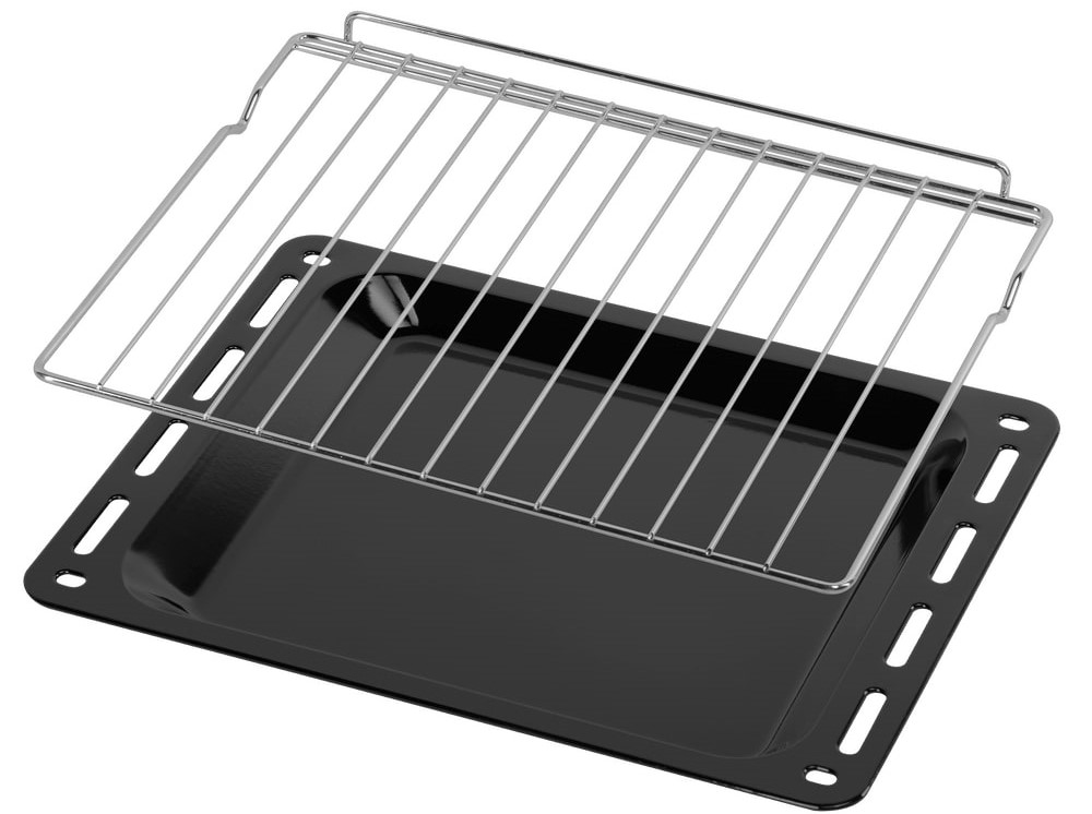 В стандартную комплектацию любого духового шкафа входят один или два противня — эмалированных или с антипригарным покрытием — и решетка. Единственный противень, как правило, имеет низкие бортики и предназначается для приготовления выпечки. Если духовка комплектуется двумя противнями, то второй отличается более высокими бортиками — его можно использовать для запекания мяса, птицы, овощных блюд. На решетке в духовке, не оснащенной грилем, обычно устанавливаются формы для запекания — стальные, керамические или стеклянные. В духовках премиум-класса количество противней может быть увеличено: к стандартному комплекту добавляются противни с перфорацией для мяса, специальные поддоны для сбора выделившегося сока.