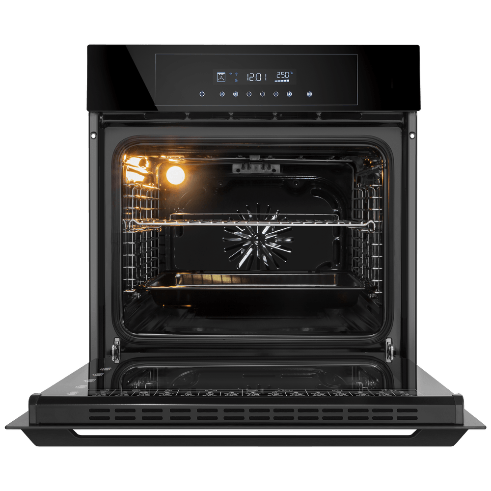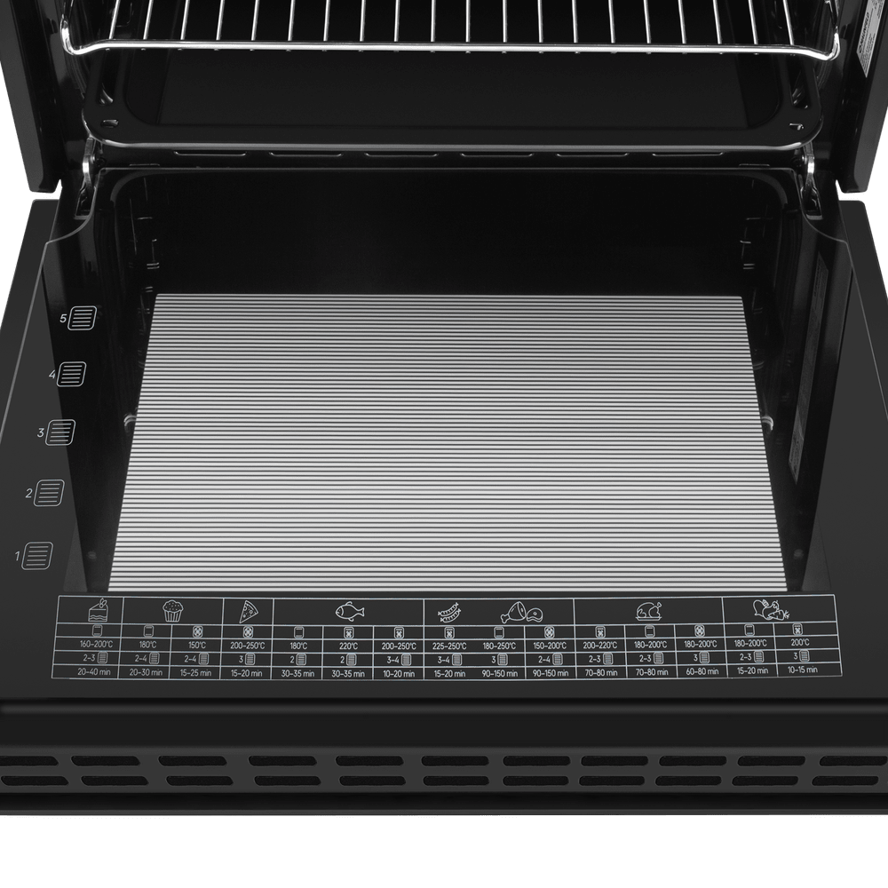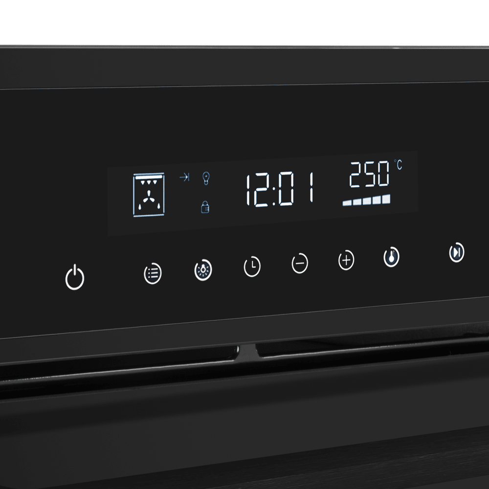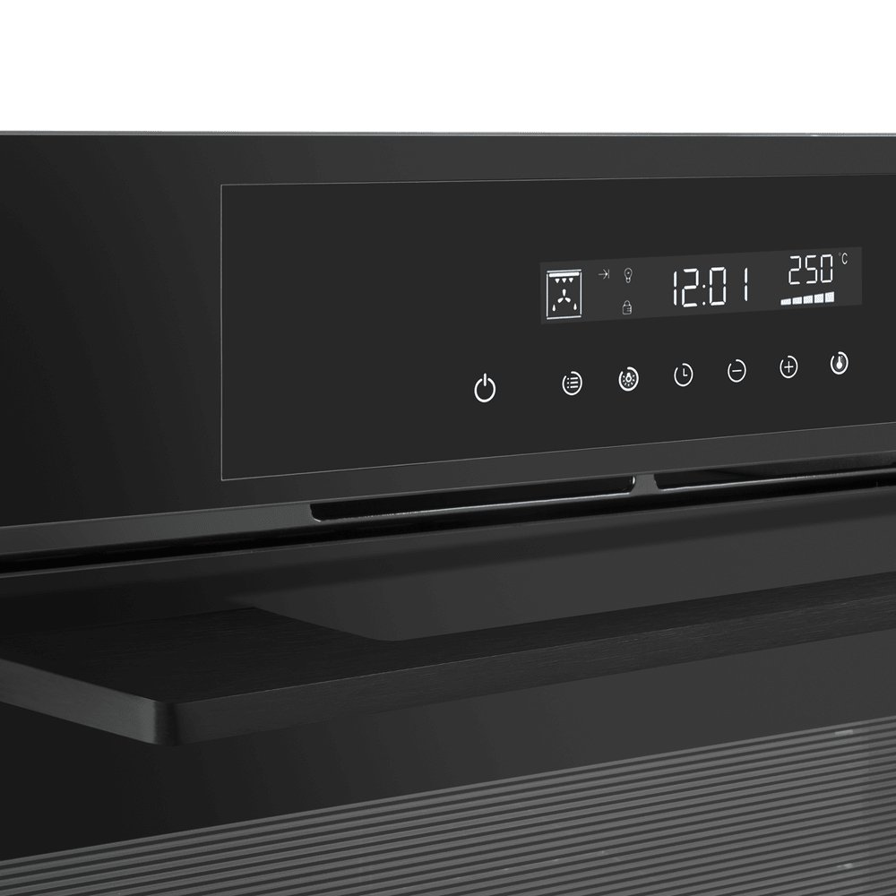 Особенности дизайна и внешней панели управления — также важный пункт при выборе духовки на кухню. В данной модели нужно обратить внимание на цвет — черный,