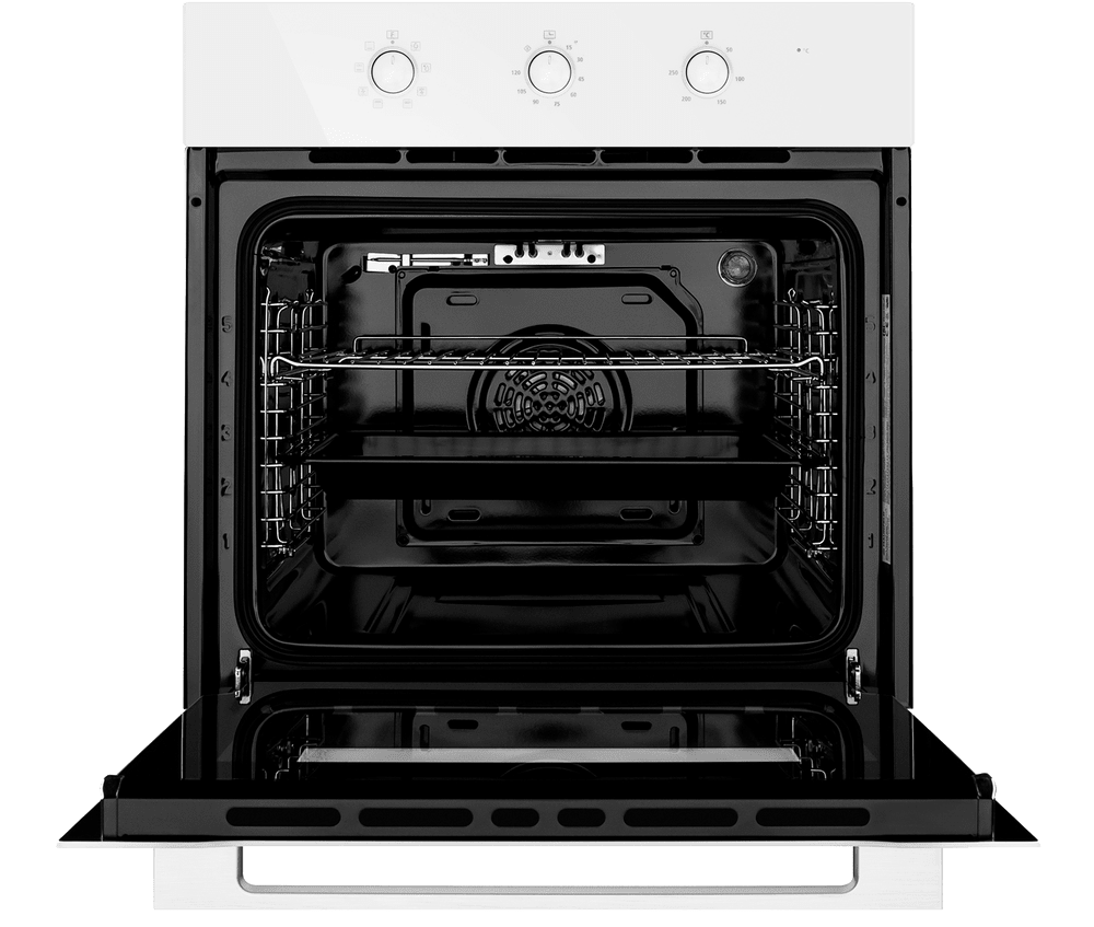 Как известно, стандартная ширина кухонной тумбы составляет около 60 см — поэтому за стандартную ширину встраиваемого духового шкафа принимают 59,5 см. Такие духовки имеют по 3–4 уровня приготовления, в них можно приготовить достаточно объемные блюда. Минимальное значение ширины духовки также соотносится с размерами тумбы для встраивания — оно составляет 44–45 см. Это хороший выбор для небольшой кухни, однако узкие духовые шкафы имеют свои недостатки — в частности, в них невозможно приготовить большой пирог или торт, запечь целый окорок, индейку или большую рыбу.