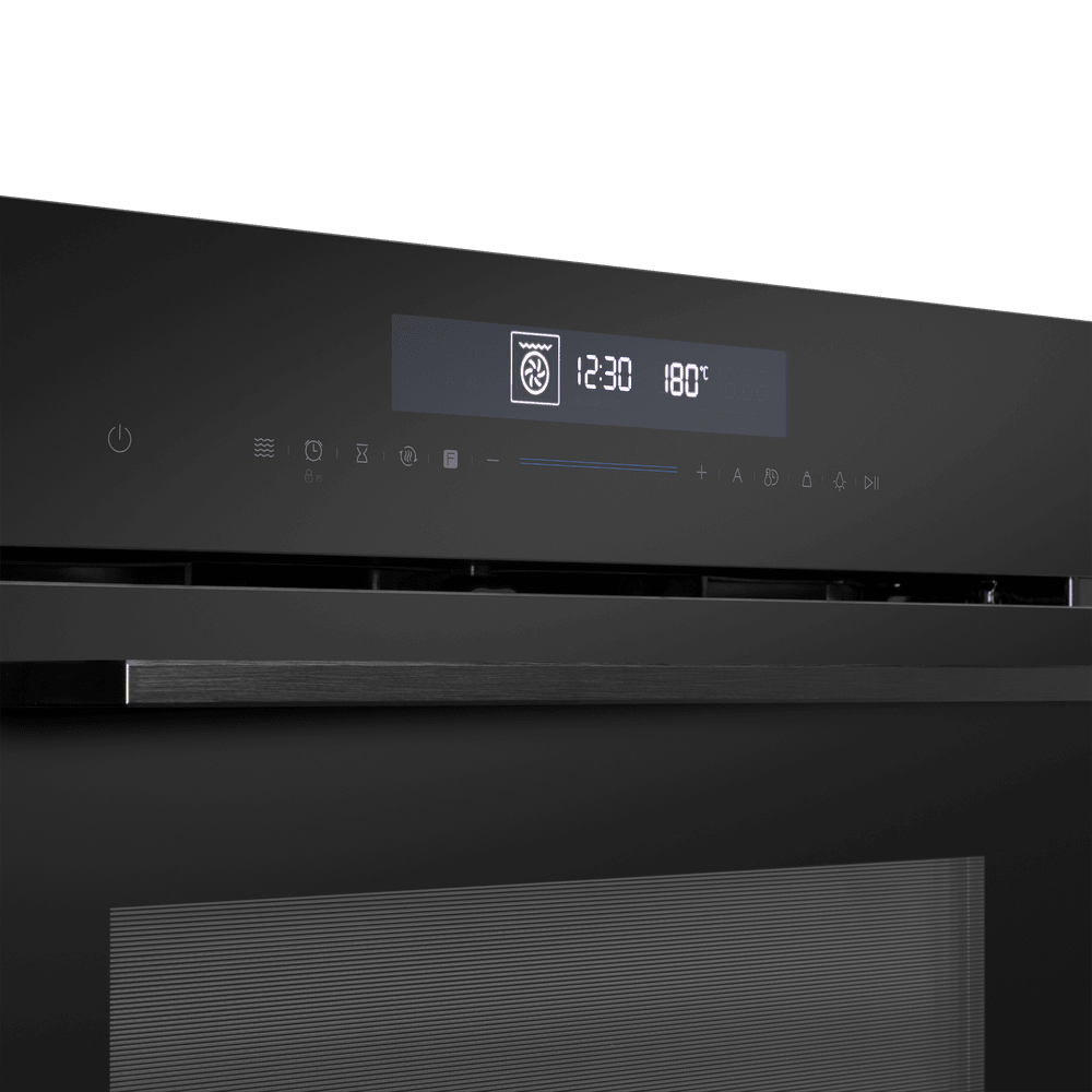 Особенности дизайна и внешней панели управления — также важный пункт при выборе духовки на кухню. В данной модели нужно обратить внимание на цвет — черный, охлаждение двери, чтобы поверхность и мебель вокруг не нагревались.