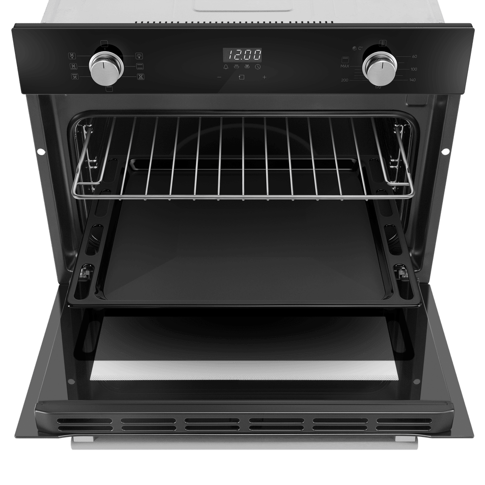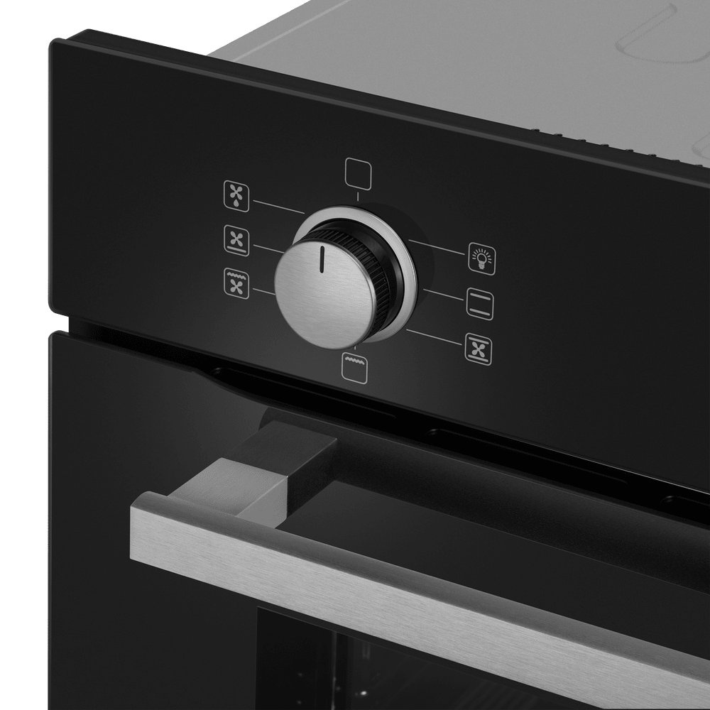 Особенности дизайна и внешней панели управления — также важный пункт при выборе духовки на кухню. В данной модели нужно обратить внимание на цвет — черный, охлаждение двери, чтобы поверхность и мебель вокруг не нагревались.