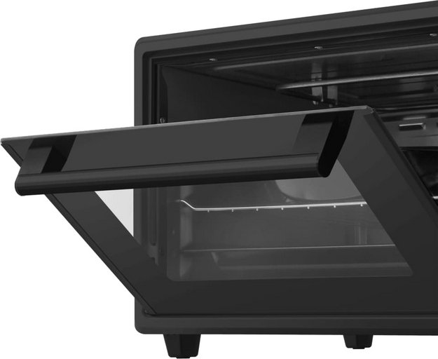 Особенности дизайна и внешней панели управления — также важный пункт при выборе духовки на кухню. В данной модели нужно обратить внимание на цвет — черный, Механическая панель управления позволяет быстро разобраться в настройке программ и не требует чрезмерных усилий.
