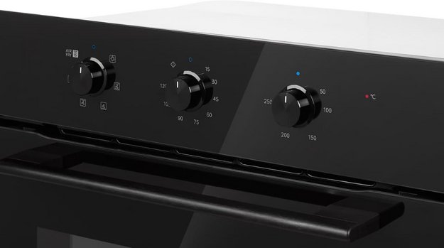 Особенности дизайна и внешней панели управления — также важный пункт при выборе духовки на кухню. В данной модели нужно обратить внимание на цвет — черный, Механическая панель управления позволяет быстро разобраться в настройке программ и не требует чрезмерных усилий.