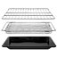 В стандартную комплектацию любого духового шкафа входят один или два противня — эмалированных или с антипригарным покрытием — и решетка. Единственный противень, как правило, имеет низкие бортики и предназначается для приготовления выпечки. Если духовка комплектуется двумя противнями, то второй отличается более высокими бортиками — его можно использовать для запекания мяса, птицы, овощных блюд. На решетке в духовке, не оснащенной грилем, обычно устанавливаются формы для запекания — стальные, керамические или стеклянные. В духовках премиум-класса количество противней может быть увеличено: к стандартному комплекту добавляются противни с перфорацией для мяса, специальные поддоны для сбора выделившегося сока.