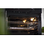 В ассортименте функций представлено 8 режимов, включая верхний и нижний нагрев, только нижний нагрев и электрический гриль мощностью 2,038 кВт. Классический нагрев в сочетании с работой вентилятора обеспечивает равномерное распределение тепла по всему объему. Объем 65 литров и пять уровней приготовления дают возможность готовить несколько блюд одновременно. Навесные направляющие и глубокий противень, входящий в комплект, упрощают размещение форм и противней.