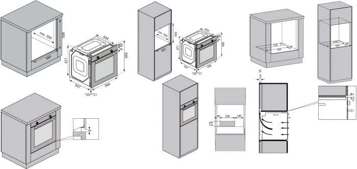 Ко всем моделям прилагаются подробные инструкции по установке, где указаны точные размеры ниши для каждой конкретной духовки.