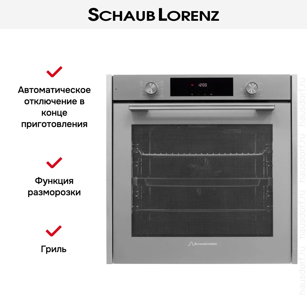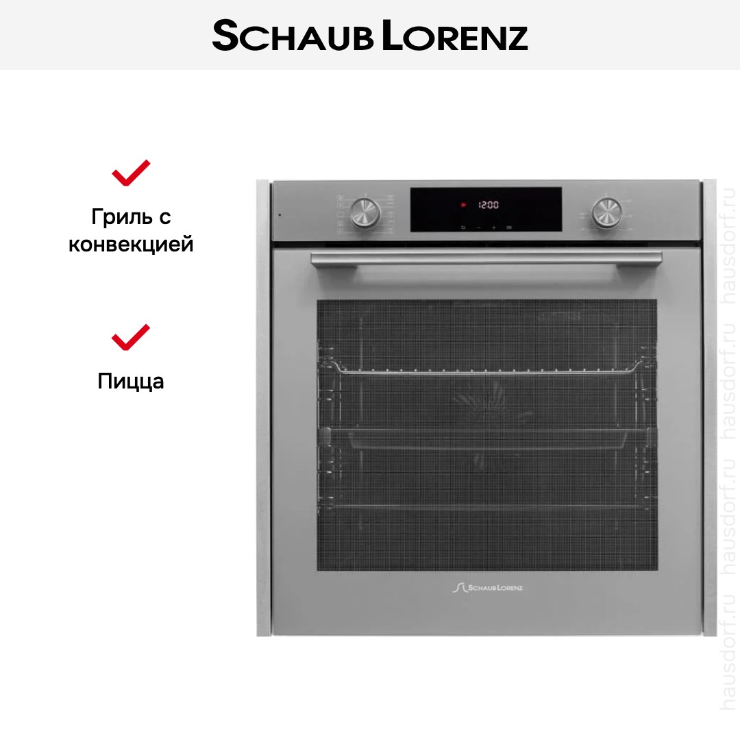 Количество режимов работы в духовом шкафу Шауб Лоренц: 10. В число доступных программ входят: классический нагрев, нижний нагрев, конвекция, гриль для создания хрустящей корочки, пицца, и другие. Помимо основных программ воспользуйтесь специальными возможностями этого прибора: размораживанием продуктов, чтобы сократить время на подготовку; вентилятором, совмещенным с грилем; и другими. Тип гриля в этой модели — электрический.