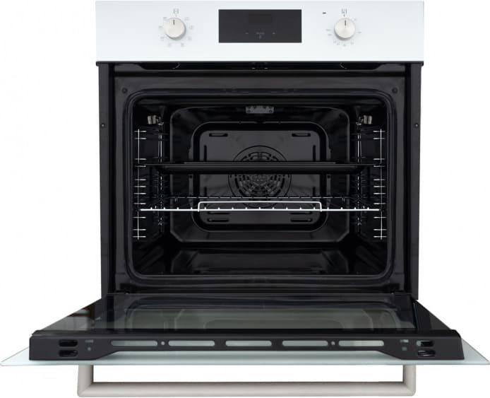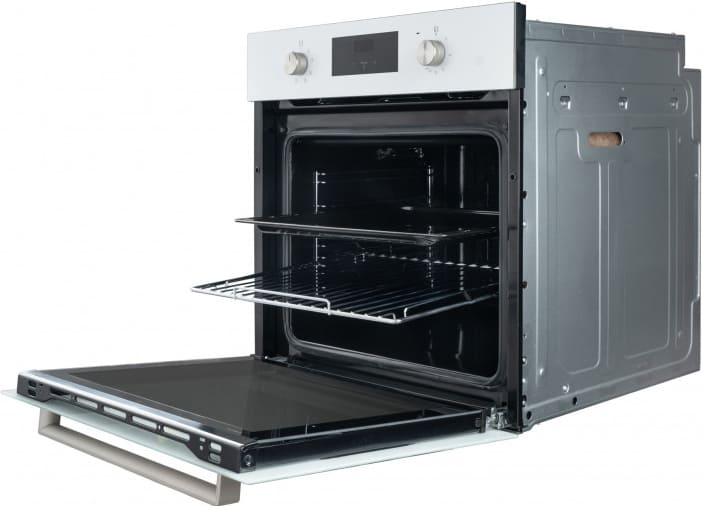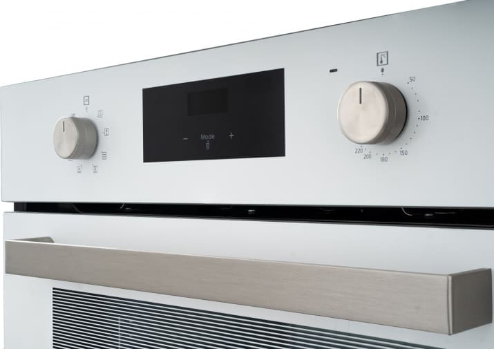 Особенности дизайна и внешней панели управления — также важный пункт при выборе духовки на кухню. В данной модели нужно обратить внимание на цвет — белый,