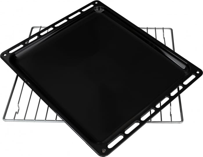 В стандартную комплектацию любого духового шкафа входят один или два противня — эмалированных или с антипригарным покрытием — и решетка. Единственный противень, как правило, имеет низкие бортики и предназначается для приготовления выпечки. Если духовка комплектуется двумя противнями, то второй отличается более высокими бортиками — его можно использовать для запекания мяса, птицы, овощных блюд. На решетке в духовке, не оснащенной грилем, обычно устанавливаются формы для запекания — стальные, керамические или стеклянные. В духовках премиум-класса количество противней может быть увеличено: к стандартному комплекту добавляются противни с перфорацией для мяса, специальные поддоны для сбора выделившегося сока.