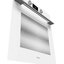 Особенности дизайна и внешней панели управления — также важный пункт при выборе духовки на кухню. В данной модели нужно обратить внимание на цвет — белое стекло,