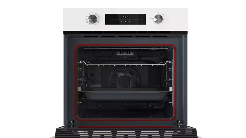 Особенности дизайна и внешней панели управления — также важный пункт при выборе духовки на кухню. В данной модели нужно обратить внимание на цвет — белый,