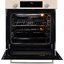Особенности дизайна и внешней панели управления — также важный пункт при выборе духовки на кухню. В данной модели нужно обратить внимание на цвет — бежевый, охлаждение двери, чтобы поверхность и мебель вокруг не нагревались.