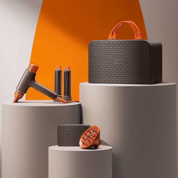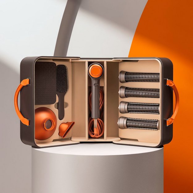Модель представлена в удобном кейсе вместе с набором аксессуаров. Цилиндрические насадки разного диаметра позволяют создать идеальные локоны и прикорневой объем, концентратор помогает высушить, завить или выпрямить пряди. Комплект дополняют расческа, органайзер и диффузор для вьющихся волос.
