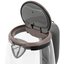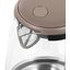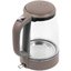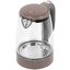 Корпус устройства выполнен из нержавеющей стали, что гарантирует его долговечность и устойчивость к коррозии. Материал колбы — стекло, что позволяет визуально контролировать процесс кипячения воды. Цветовое решение в стиле грейдж придает устройству современный и стильный вид, который гармонично впишется в любой интерьер. Подсветка корпуса делает использование еще более удобным и эстетически приятным. Механическое управление и переключатели в форме ручки обеспечивают простоту и надежность эксплуатации. Клавиша включения/выключения расположена на корпусе сбоку, что обеспечивает удобство использования.