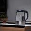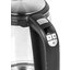 Чайник с колбой из термостойкого стекла работает от электричества. Боросиликатное стекло Schott Duran не темнеет от времени, особо устойчиво к изменениям температуры, химическим и механическим воздействиям и не оказывает влияния на вкус напитка. Нанесенные на поверхность отметки позволяют визуально контролировать количество воды. Большой объем колбы 1,9 литра подойдет для чаепития в большой семье. Мощность 2000 Вт гарантирует очень быстрое закипание. Удобная ручка имеет противоскользящее покрытие. Для правильного заваривания различных сортов чая можно выбрать температуру нагрева в диапазоне от 50 до 100°С. Вы можете регулировать уровень нагрева с помощью кнопок на ручке — значение отображается на дисплее, ступень настройки — 5 градусов. Модель оборудована защитной системой — автоматически отключается, если внутри нет воды. Звуковые сигналы сообщают вам о ходе работы. Плавно открывающаяся крышка предохраняет от разбрызгивания кипятка и предотвращает возможность ожога. База с поворотом на 360° позволит ставить чайник с максимальным удобством.