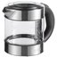 Объем колбы 1 литр, высота модели 19 см и вес всего 1,2 кг позволяют использовать этот чайник на даче или в офисе, а также брать с собой в поездки. Чайник, изготовленный из прочной нержавеющей стали и высококачественного боросиликатного стекла Schott DURAN без вредных примесей, очень удобен и прост в очистке. Это стекло отличается повышенной термической устойчивостью и увеличенной стойкостью к химическим и механическим повреждениям. На стекло нанесены удобные отметки, которые показывают не только уровень жидкости, но и время до закипания и количество чашек чая. Закрытый нагревательный элемент уменьшает образование накипи, а для полного ее устранения служит съемный фильтр из нержавеющей стали. Кипячение воды займет считанные минуты: мощность модели очень велика и достигает 2400 Вт. Специальная кнопка на эргономичной нескользящей ручке предназначена для плавного открытия крышки, исключающего разбрызгивание и защищающего владельца от пара. Здесь же располагается и кнопка включения.