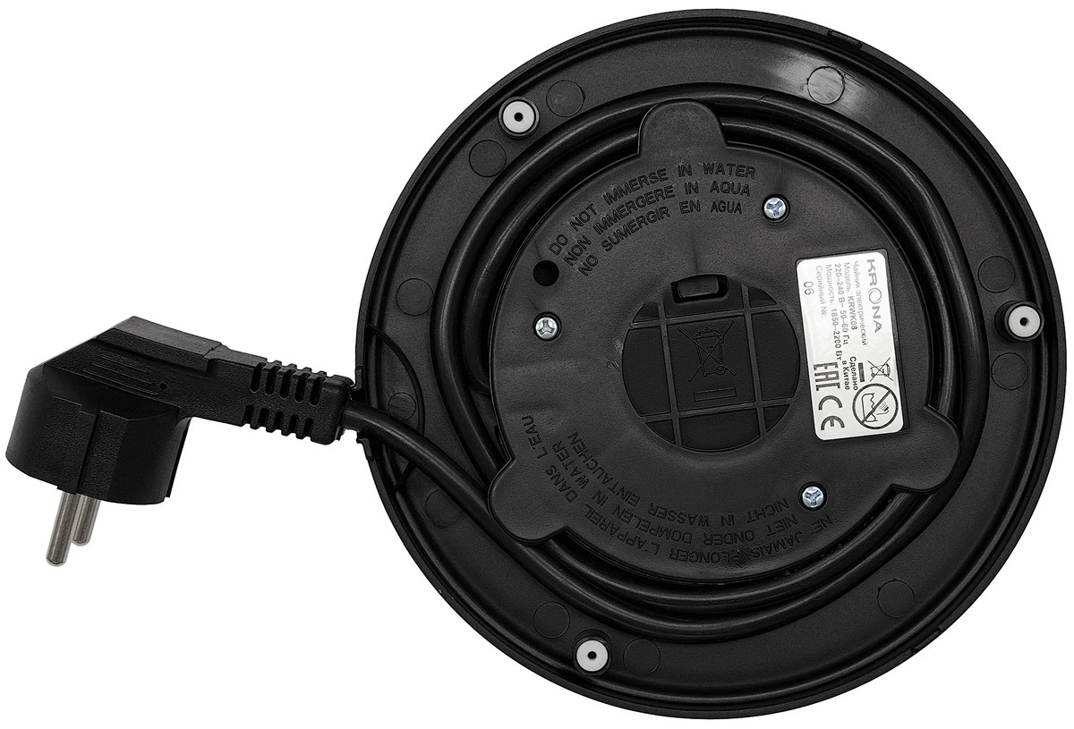 Чайник KRONA Elegant Black КА-00008502 — современное и стильное решение для быстрого приготовления горячих напитков, сочетающее в себе элегантный чёрный дизайн, высокую функциональность и продуманную конструкцию. Этот электрочайник обладает вместимостью 1,7 литра, что делает его универсальным как для индивидуального пользования, так и для обслуживания небольшой компании. Мощность в 2200 Вт обеспечивает стремительный нагрев воды до кипения — всего за несколько минут вы получите горячую основу для чая, кофе, какао или быстрых блюд. В основе устройства — закрытый нагревательный элемент, расположенный в дне колбы, что гарантирует равномерное распределение тепла, снижает образование накипи и упрощает уход за внутренней поверхностью. Колба выполнена из высококачественной нержавеющей стали, устойчивой к коррозии и не влияющей на вкус воды, в то время как корпус изготовлен из прочного термостойкого пластика чёрного цвета, что придаёт прибору лаконичный и современный облик. Такое сочетание материалов обеспечивает лёгкость конструкции, сохраняя при этом прочность и долговечность. Эргономичная ручка продумана для комфортного и безопасного хвата даже при полной загрузке, а крышка с удобным механизмом открывания облегчает наполнение и очистку. Прибор оснащён автоматической системой отключения при закипании и защитой от включения без воды, что повышает безопасность эксплуатации в любых условиях. Несмотря на отсутствие цифровых настроек, модель отличается высокой практичностью: она работает тихо, не нарушая утреннюю тишину, и гармонично вписывается в интерьеры от минимализма до индустриального стиля. Гладкая поверхность корпуса легко очищается, а устойчивое основание предотвращает случайное опрокидывание. Этот электрочайник станет незаменимым помощником в повседневной жизни, экономя время и обеспечивая стабильный результат без лишних усилий. Он подойдёт как для дома, так и для офиса, где важны скорость, надёжность и эстетика. Сочетание продуманной инженерии, качественных компонентов и сдержанного дизайна делает данную модель разумным выбором для тех, кто ценит комфорт, функциональность и стиль в быту.