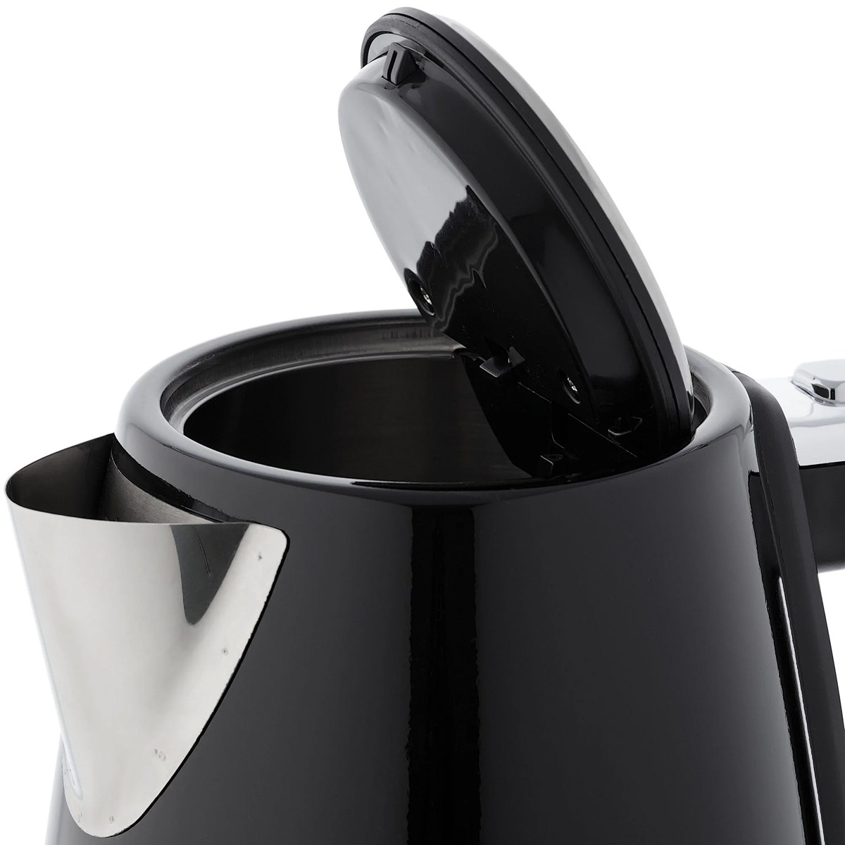 Чайник KRONA Stahl Black КА-00007487 — стильный и мощный электроприбор, созданный для тех, кто ценит скорость, надёжность и эстетику в чёрных тонах. Эта модель объединяет в себе высокую функциональность и современный дизайн, идеально вписываясь в интерьеры от урбанистического лофта до строгой классики. Объём колбы составляет 1,7 литра, что позволяет легко удовлетворить потребности как одного человека, так и небольшой компании. Благодаря мощности в 2200 Вт вода достигает кипения всего за считанные минуты, экономя время без ущерба для качества. В основе конструкции — закрытый нагревательный элемент, интегрированный в дно колбы, что обеспечивает быстрый и равномерный прогрев, снижает образование накипи и упрощает уход за внутренней поверхностью. И корпус, и колба выполнены из прочной нержавеющей стали, отличающейся долговечностью, устойчивостью к коррозии и отсутствием посторонних привкусов, что гарантирует чистоту вкуса любого напитка. Глубокий чёрный оттенок придаёт устройству лаконичную элегантность и подчёркивает современный характер кухонного пространства. Эргономичная ручка из термостойкого материала обеспечивает комфортный и безопасный хват даже при полной загрузке, а крышка с удобным механизмом открывания облегчает наполнение и обслуживание. Прибор оснащён системой автоматического отключения при закипании и защитой от сухого включения, что делает его безопасным в повседневной эксплуатации. Несмотря на отсутствие цифровых функций, модель сохраняет высокий уровень практичности: она работает тихо, не отвлекая в утренние часы, и легко размещается на любой столешнице благодаря компактным пропорциям. Прочный корпус устойчив к царапинам и сохраняет презентабельный вид даже при интенсивном использовании. Этот электрочайник станет верным спутником в приготовлении чая, кофе, горячих напитков или быстрых блюд, таких как каши и супы. Он подойдёт как для дома, так и для офиса, где важны скорость, простота и надёжность. Сочетание продуманной инженерии, качественных материалов и сдержанного дизайна делает данную модель разумным выбором для тех, кто стремится к комфорту и стилю в повседневной жизни.