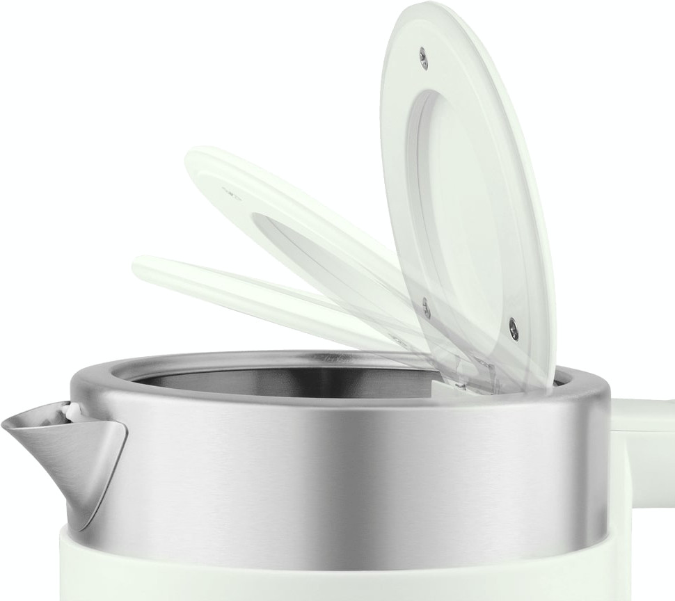Колба расположена внутри, окружена дополнительным корпусом. Благодаря этому высокая температура воды сохраняется дольше, а термоизоляция улучшается — защищает от ожогов.
