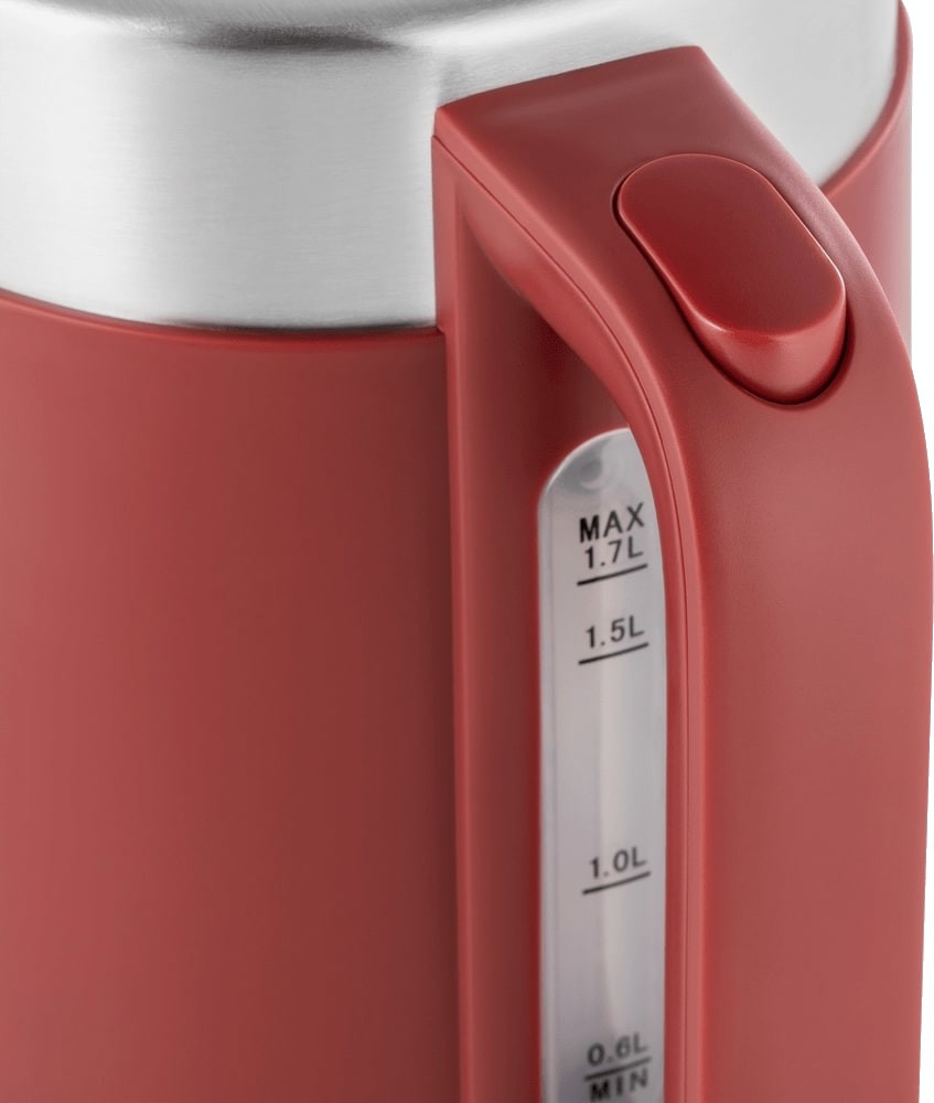 Материал корпуса: металл/пластик. Материал подставки: пластик. Объем (л): 1.7. Цвет: вишня. Мощность (Вт): 2200. Управление: механическое.