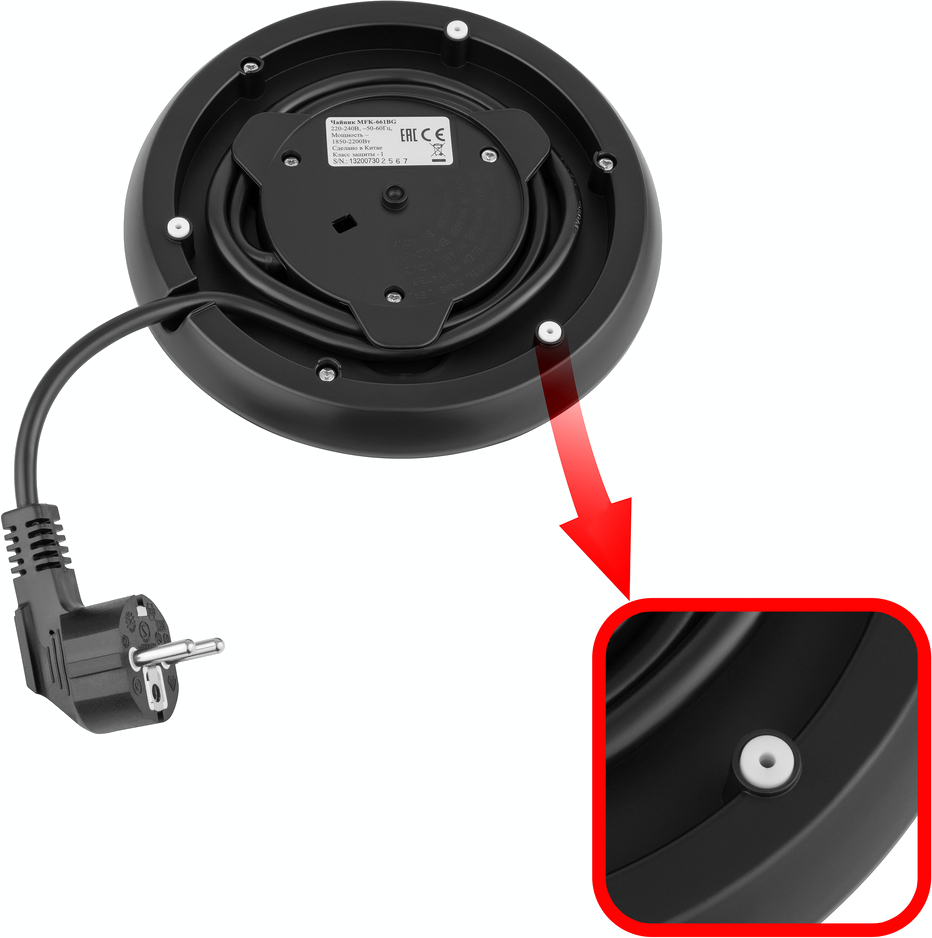 Вы можете установить чайник на такую базу в любом положении. Благодаря этому не нужно выбирать угол, под которым вы повернете носик чайника к себе или от себя, так как он всегда будет работать.