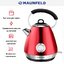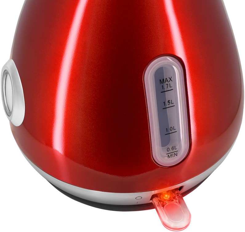 Материал корпуса: металл. Материал подставки: пластик. Объем (л): 1.7. Цвет: вишня. Мощность (Вт): 2200. Управление: механическое.
