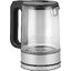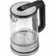 Корпус объединяет прочные металлические вставки и лёгкий пластик, что даёт баланс между долговечностью и малым весом. Стеклянная колба устойчиво переносит нагрев и сохраняет чистоту вкуса напитков, а прозрачность позволяет контролировать процесс кипения без открытия крышки. Объём 1,7 литра удобно подходит для семьи или офисной кухни: достаточно для нескольких чашек чая и не занимает много места на столешнице.