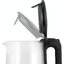 Мощность 2200 Вт обеспечивает быстрое закипание, а закрытый нагревательный элемент упрощает уход и снижает риск образования заметных отложений на поверхности тэна. Управление механическое, с кнопочными переключателями, расположенными удобно на ручке сверху для интуитивного включения. Крышка открывается нажатием, что исключает контакт с паром и делает наливание воды безопасным и аккуратным.