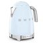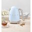 Smeg KLF04PBEU — это электрический чайник, выполненный в фирменном ретро-стиле, на создание которого дизайнеров вдохновили предметы середины 20 века. Он сочетает в себе традиционные черты винтажного оборудования (плавность силуэта, нежно-голубое глянцевое покрытие, хромированные элементы) с функциональностью наиболее современных образцов электротехники для дома.