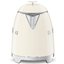 Чайник Smeg KLF05CREU — модель для небольшой семьи, дачи или офиса. Благодаря весу всего 1 кг и высоте 20 см его можно брать с собой в поездку. Модель производства известной итальянской фирмы относится к коллекции в стиле ретро, имитирующей технику 50-х годов 20 века. Округлая форма и глянцевый кремовый цвет корпуса, блестящее хромированное основание и ручка, носик из полированной нержавеющей стали создают единый гармоничный образ. Сам корпус изготавливается из особого пластика, устойчивого к повышению температуры, а внутренняя колба — из нержавеющей стали.