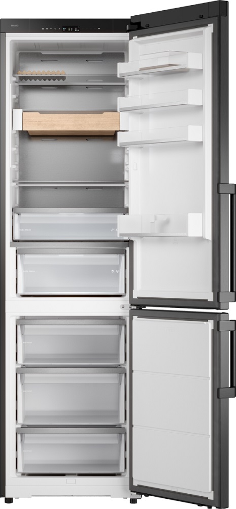 Трехкамерные модели выпускаются в нескольких вариантах. В некоторых случаях в качестве третьей камеры поступает так называемая зона свежести — отделение, где поддерживается температура около 0 градусов. В другом варианте подобные модели имеют морозильную камеру, состоящую из двух выдвижных ящиков.