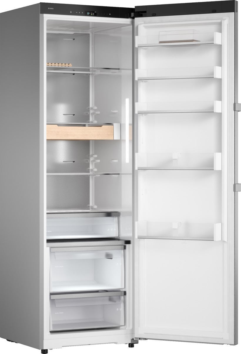 Нередко зона свежести состоит из нескольких ящиков с разным уровнем влажности. Продукты с высоким содержанием влаги — например, овощи или фрукты, хранятся при влажности воздуха около 85-90%, а такие продукты, как мясо, рыба или сыр, требуют пониженной влажности около 50-60%. У большинства моделей при загрузке и извлечении продуктов из зоны свежести приходится пользоваться общим освещением холодильной камеры.