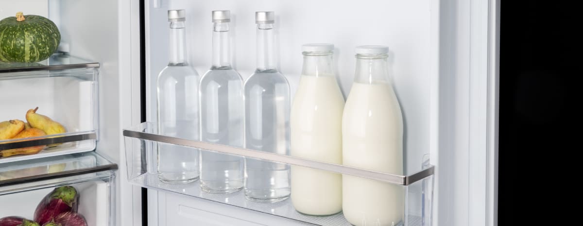 Отделение для бутылок в холодильной камере позволяет устойчиво и удобно размещать стеклянные и пластиковые бутылки, а также жидкости в таре из картона любого размера.