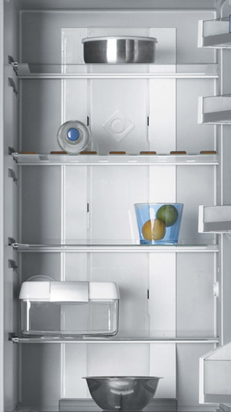 Некоторые бренды разработали специальные системы регулировки полок в холодильной и морозильной камере. Например, компании Miele оснастила свои морозильные камеры продольными направляющими, так что изменить высоту расположения полок можно одним касанием. Кроме регулировки по высоте, в некоторых моделях имеются складные полки из стекла и пластика. В подобных полках одна половина задвигается под другую для того, чтобы можно было устанавливать высокие кастрюли, большие банки или упаковки.