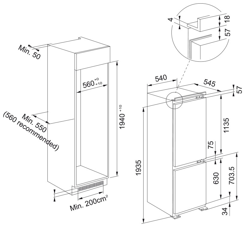 При всем сходстве с обычными отдельностоящими холодильниками частично встраиваемые модели имеют свои конструктивные особенности. Они связаны прежде всего с тем, что при встраивании необходимо обеспечить вентиляцию задней и боковых стенок, а также снизить уровень шума и вибраций. Как правило, проблема решается при помощи специальной системы вентиляции, когда вентиляционные решетки располагаются в нижней части корпуса холодильника.