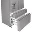 Модель имеет конфигурацию French-Door: он оборудован двумя верхними дверцами для доступа к холодильной камере и выдвижным ящиком в морозилке. Такая конструкция удобна и позволяет удерживать холод внутри камеры при открытии одного из отделений.