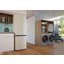 Встраиваемые холодильники монтируются в нишу или колонну. Передняя их часть закрывается декоративным мебельным фасадом и снаружи не отличается от дверцы обычного кухонного шкафа, так что их не нужно подбирать под интерьер помещения. Объем этих холодильников, как правило, несколько меньше, чем у отдельностоящих, так как при встраивании необходимо оставлять свободное пространство для вентиляции. Они отличаются меньшим уровнем шума, а также лучше держат холод и отличаются большей экономичностью из-за дополнительного слоя изоляции. Ассортимент этих холодильников не так велик, как у отдельно стоящих, установка более трудоемкая, а стоимость обычно несколько выше.