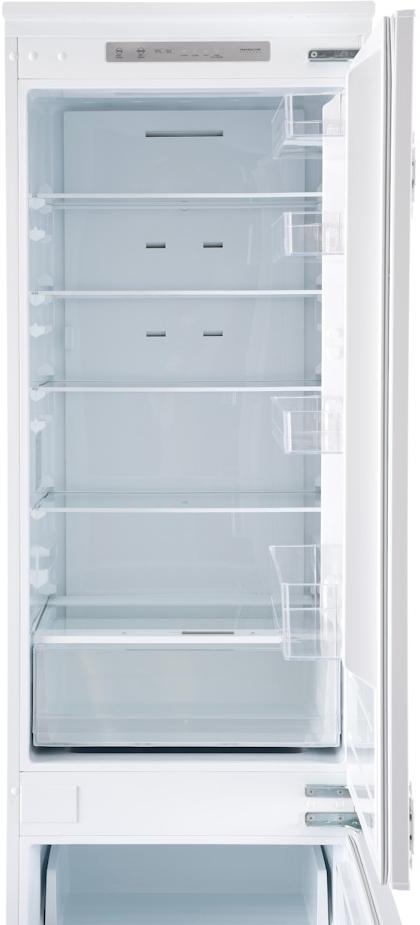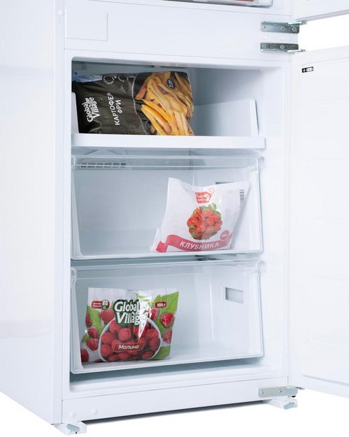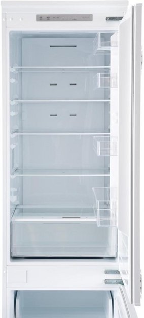 Встраиваемый прибор проще разместить в комнате, даже если общий метраж не такой уж большой. Вы можете спрятать его за декоративной панелью от мебельного фасада — советуем заранее определить нишу и заказывать панели исходя из типа крепления к двери. Способ монтажа в данной модели: жесткое крепление (система door on door) Благодаря внушительным размерам, в частности высоте, она подходит большим пространствам — просторной кухне, еврогостиной. Холодильник с морозильником обладает всеми опциями, которые чаще всего ищут и выбирают покупатели. Стандартная конфигурация — универсальный вариант для любой квартиры. Количество камер: 2.
