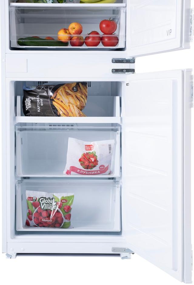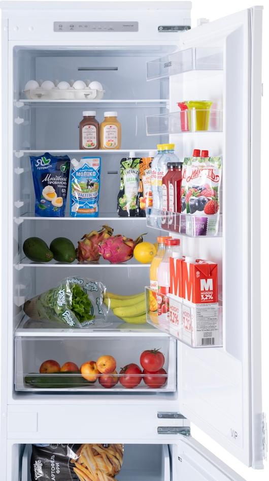 Внутреннее наполнение холодильной и морозильной камер включает многочисленные и разнообразные полки, ящики, контейнеры. Все они используются для более удобного и рационального размещения продуктов, которое обеспечивает хороший обзор содержимого холодильника и быстрый поиск.