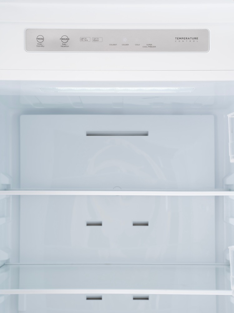 Гораздо точнее сориентироваться по индикаторам можно в холодильниках с электронной системой управления. Эти устройства обычно оснащены дисплеем, на котором высвечиваются значения фактической температуры в холодильной и морозильной камерах. Рядом с ними располагаются кнопки, во многих случаях сенсорные, при помощи которых можно регулировать температуру в каждой камере отдельно, и индикаторы включения этих камер. Здесь же, на панели инструментов, находятся индикаторы, указывающие на активацию дополнительных опций — например, режимов быстрого замораживания и быстрого охлаждения, отпускного режима, блокировки панели управления от детей.