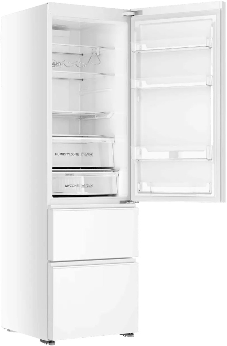 Трехкамерные модели выпускаются в нескольких вариантах. В некоторых случаях в качестве третьей камеры поступает так называемая зона свежести — отделение, где поддерживается температура около 0 градусов. В другом варианте подобные модели имеют морозильную камеру, состоящую из двух выдвижных ящиков.