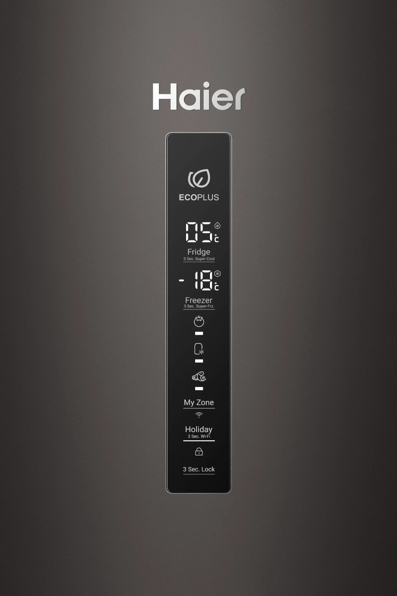 Управление современное и гибкое: сенсорные кнопки и дисплей на дверце дают быстрый доступ к настройкам. Есть индивидуальная регулировка температур для холодильной и морозильной камер, режимы SuperCool и SuperFrost для быстрого охлаждения и заморозки, а также функция «Отпуск» для экономии ресурсов при длительном отсутствии хозяев. Дополнительные опции включают FreshTurbo с УФ-обработкой для уменьшения микробной нагрузки, Tower LED — равномерное освещение задней стенки, HCS — мембранную технологию контроля влажности, индикаторы температуры, индикацию открытой двери, блокировку настроек от детей и возможность управления через мобильное приложение.