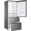 Холодильники с так называемой французской дверью или French Door также имеют распашные двери, но за ними находится не две, а одна камера. Эти двери занимают не всю высоту холодильника, а только ее часть. В нижней части подобных холодильников могут находиться либо еще две распашные двери, либо выдвижные морозильные ящики.
