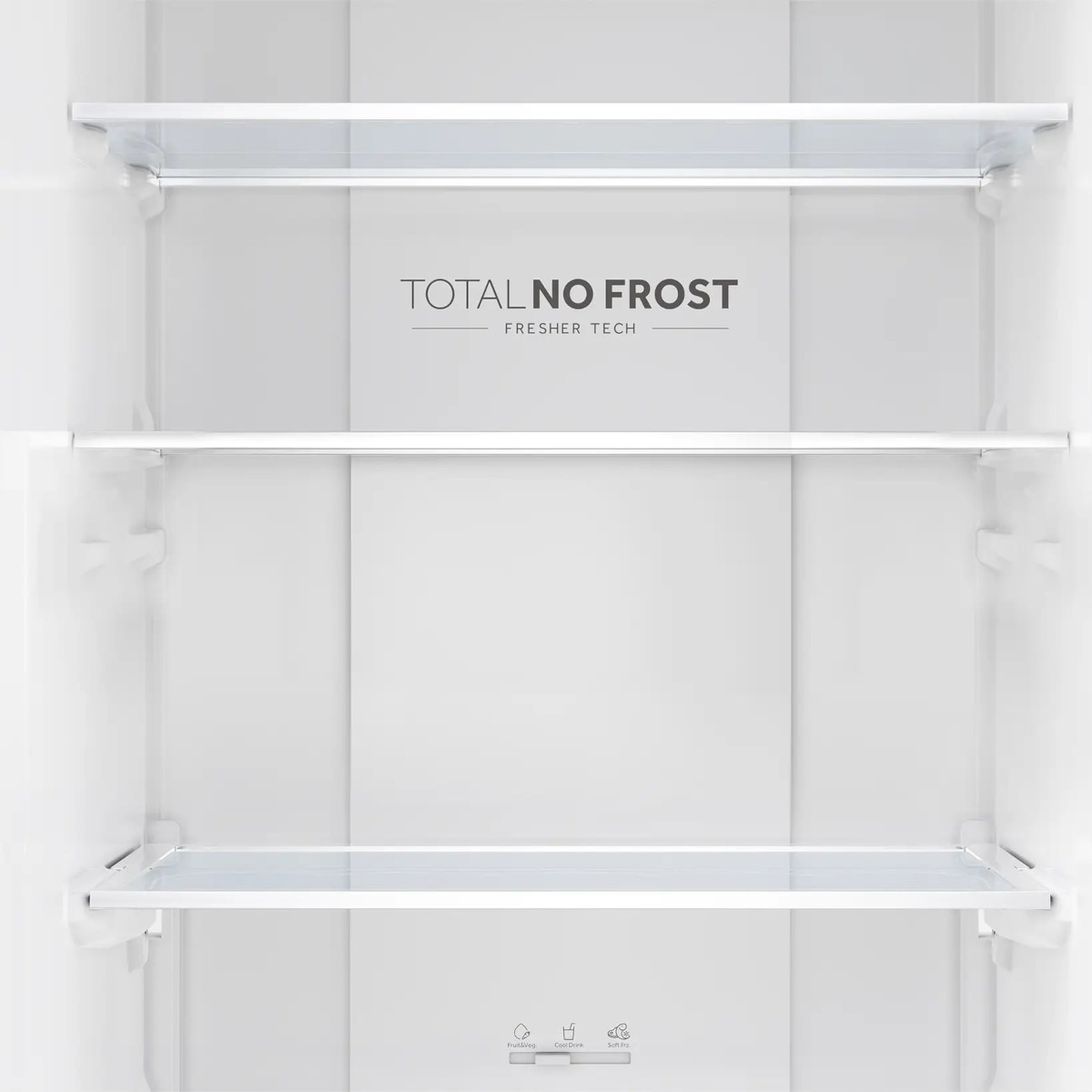 No Frost (Total No Frost, Frost Free): вентилятор обеспечивает циркуляцию охлажденного воздуха, благодаря чему лед не нарастает на стенке, а концентрируется только на скрытом внутри холодильника испарителе. Талая вода собирается в специальной емкости и испаряется. Такой холодильник не нужно размораживать – это экономит время и позволяет не останавливать прибор. Благодаря этим плюсам в современных моделях No Frost – самая распространенная система.